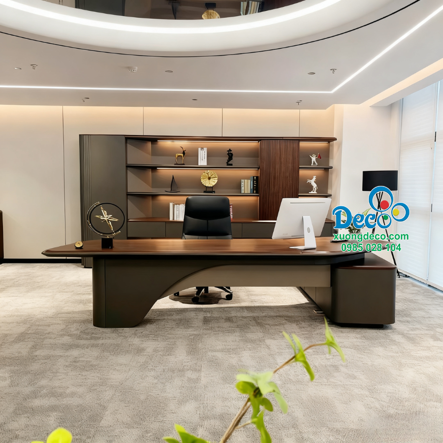 Bàn lãnh đạo là trung tâm của không gian làm việc lãnh đạo, nơi thể hiện rõ nhất vị thế, phong cách và tầm nhìn quản trị của người đứng đầu doanh nghiệp. Không đơn thuần chỉ là một chiếc bàn làm việc, bàn lãnh đạo còn đóng vai trò như một tuyên ngôn hình ảnh, góp phần tạo ấn tượng mạnh mẽ với đối tác, khách hàng và đội ngũ nhân sự khi bước vào phòng làm việc. Lựa chọn một mẫu bàn lãnh đạo phù hợp không chỉ nâng tầm không gian văn phòng mà còn góp phần thể hiện trọn vẹn tinh thần đương đại và khẳng định đẳng cấp của người tiên phong
