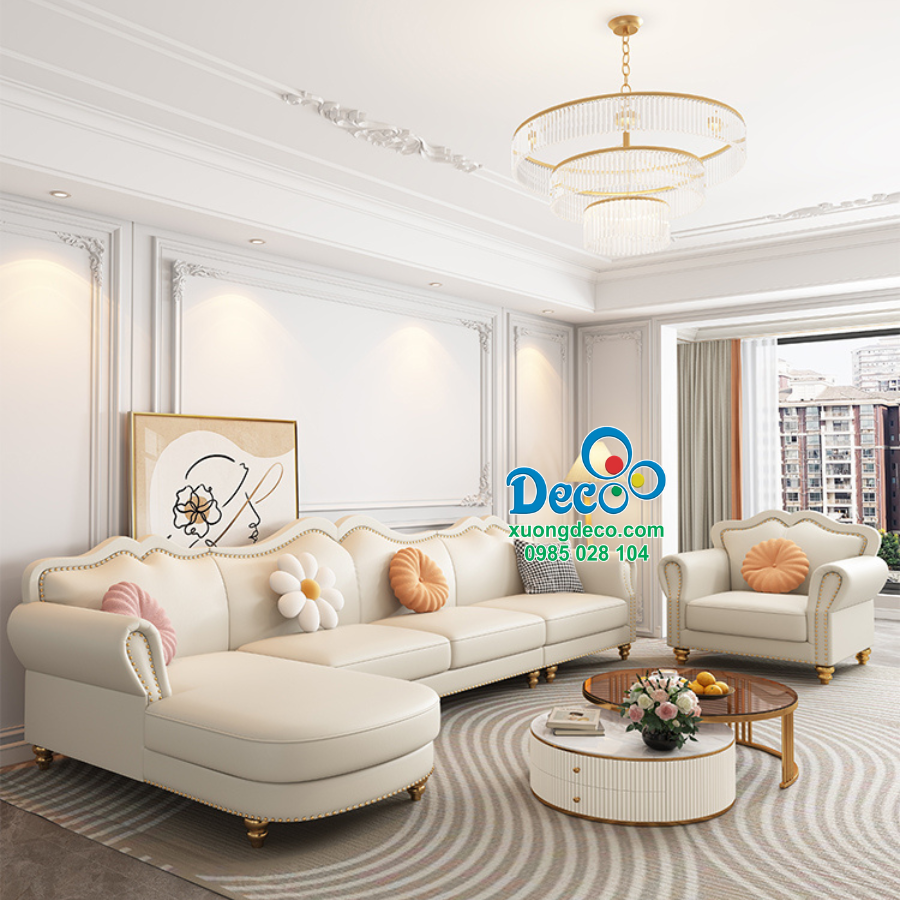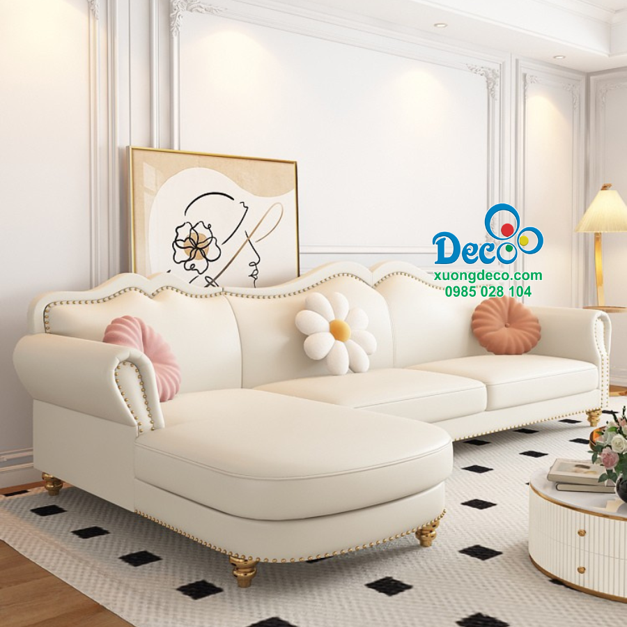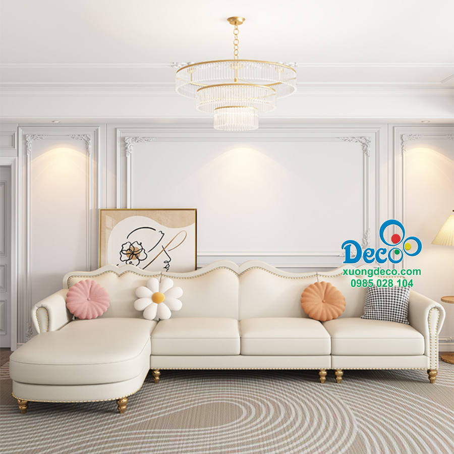 Sofa được thiết kế với tone màu kem, màu kem là gam màu trung tính, nhẹ nhàng. Tone màu này không chỉ giúp tăng thêm sự thanh lịch, mà còn mang lại cảm giác nhẹ nhàng, tinh khiết và ấm áp cho không gian phòng khách.