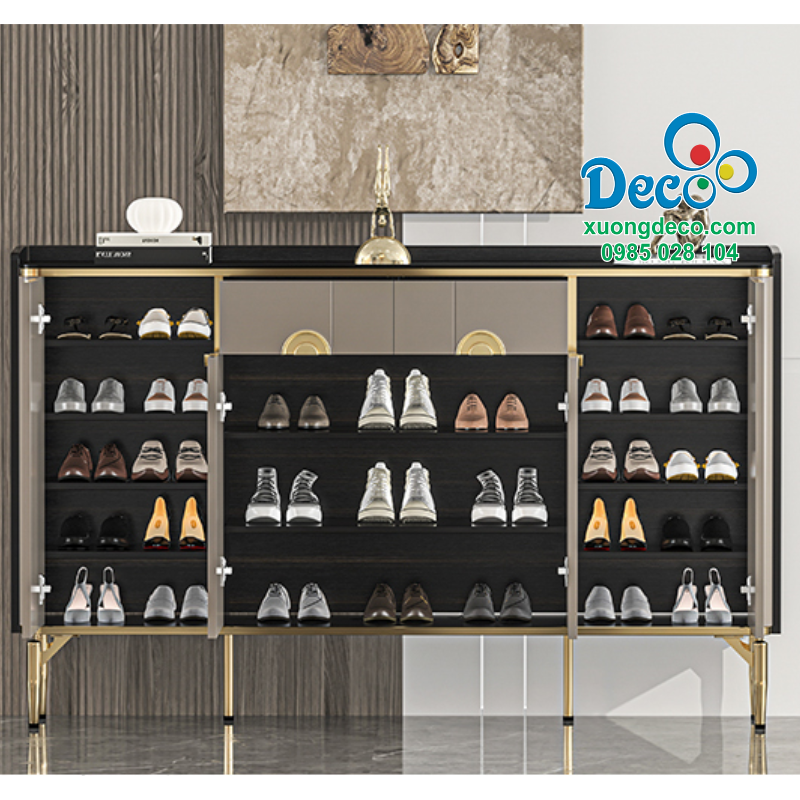 Về phần công năng, tủ giày được Deco chia thành các khoang riêng biệt. Khoang thấp giúp bạn dễ dàng lưu trữ các loại giày thể thao, dép, guốc hoặc giày đế thấp mà không mất nhiều không gian. Thiết kế này còn tạo ra không gian dễ dàng lấy và cất giày mà không cần phải cúi quá sâu, thuận tiện cho việc sử dụng hàng ngày.