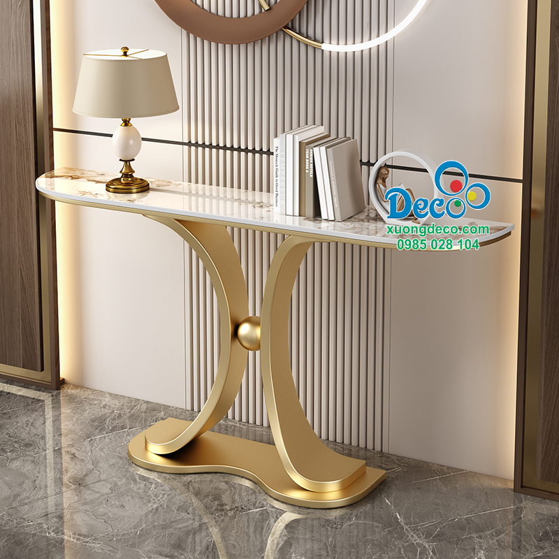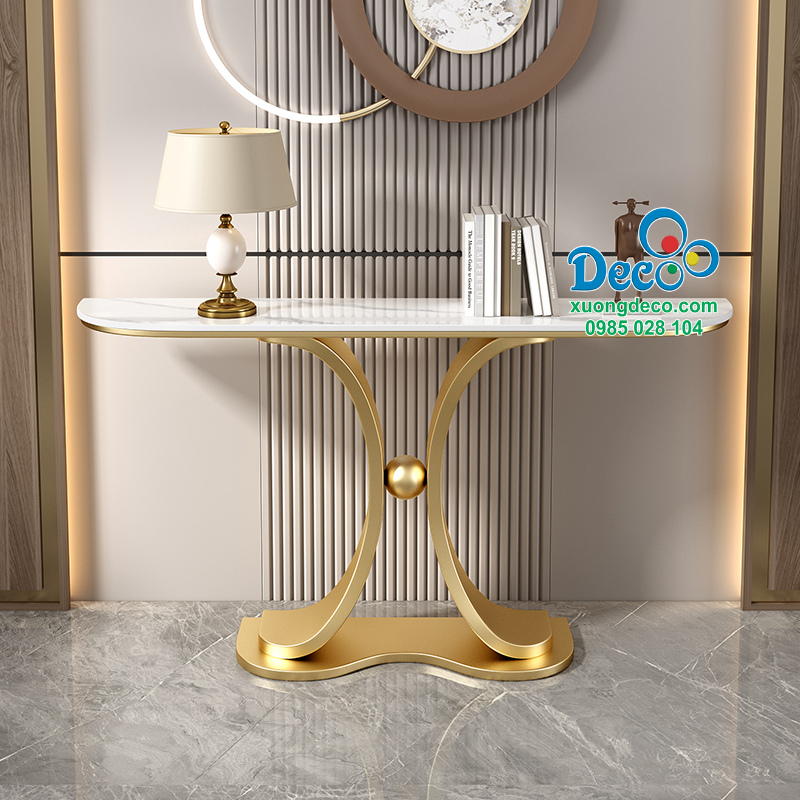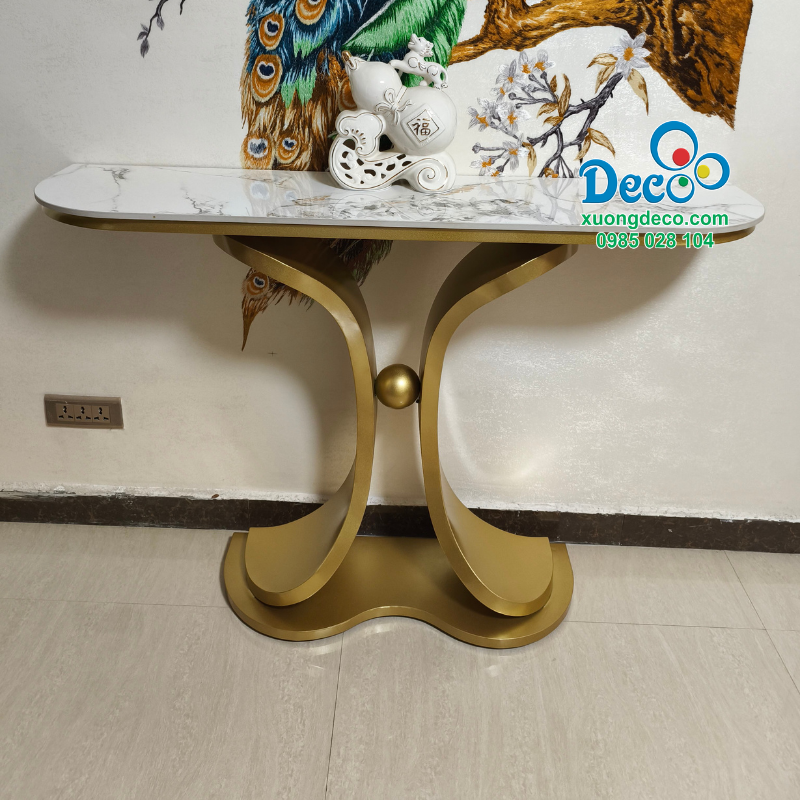 Chất liệu: trên mặt là mặt đá marble nhân tạo chống ngấm thấm nước, chân làm inox 304 mạ PVD sáng bóng đẹp