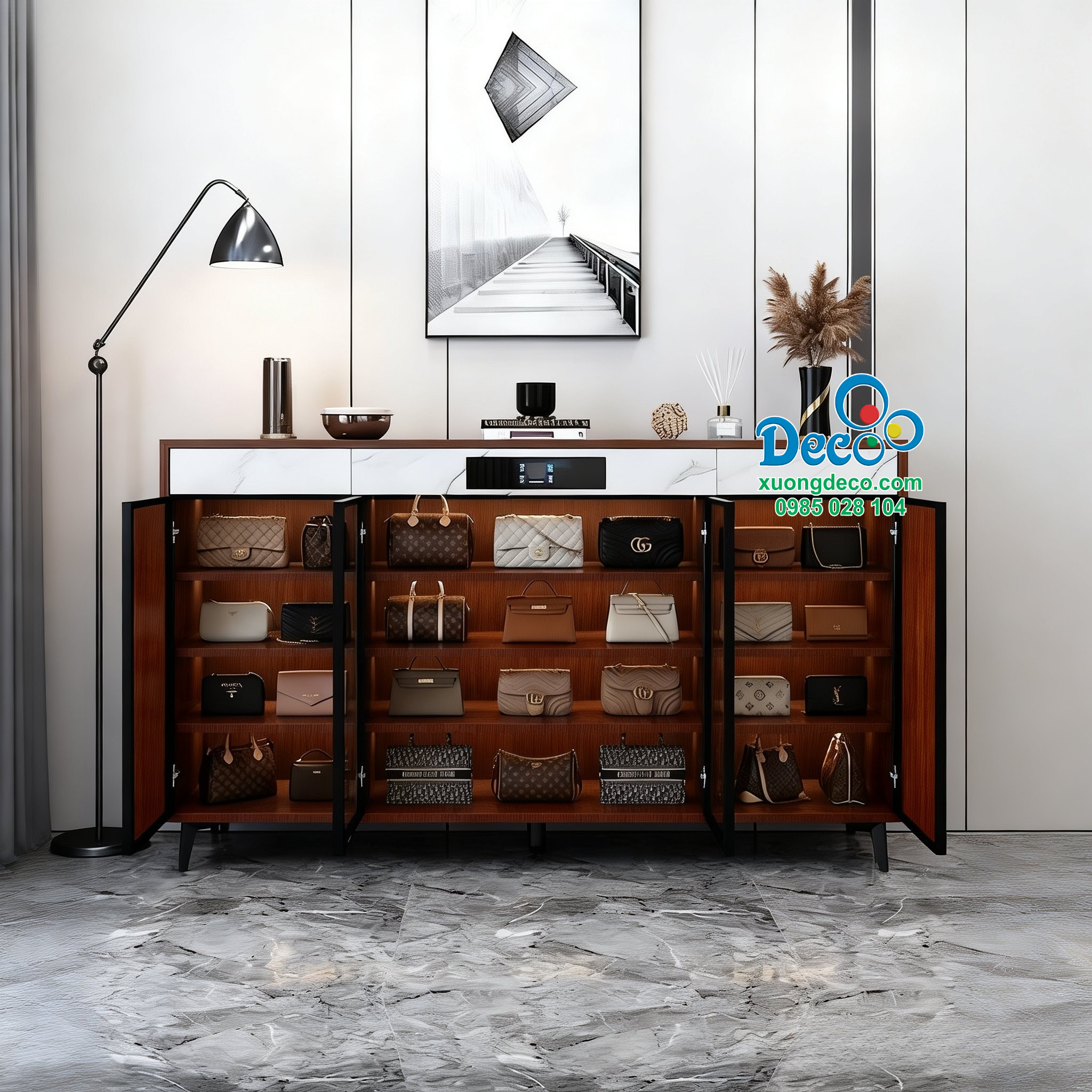 Với những túi hiệu và giày hiệu là những sản phẩm cao cấp giá trị cao để giúp bảo quản tốt không bị mất trộm thì Deco đã thiết kế thêm ổ khóa cánh kính để giúp các bác khóa lại mang lại sự yên tâm khi sử dụng
