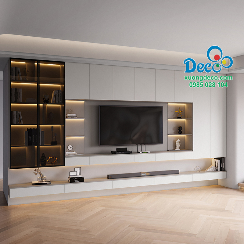 Báo giá Tủ vách trang trí phòng khách chống mối chống nước TVCC38: 115.425.000 VND ( giá chưa bao gồm đèn led)