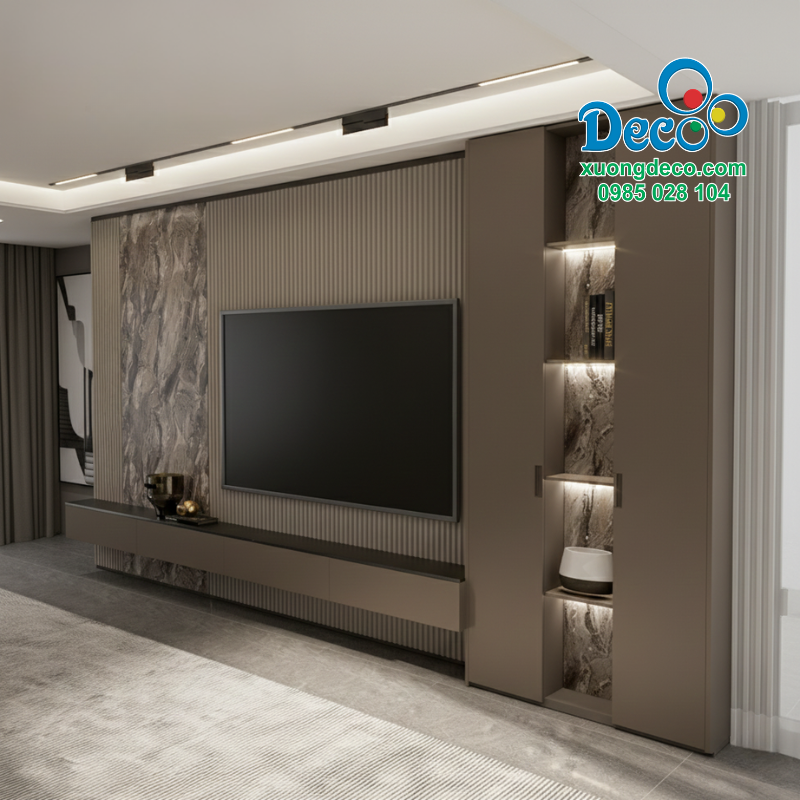 Giá tủ vách trang trí phòng khách chống nước chống mối không có một mức cố định, mà sẽ khác nhau tùy thuộc vào nhiều yếu tố như chất liệu, kích thước, thiết kế, phụ kiện và địa điểm thi công. Để biết báo giá chi tiết và chính xác nhất phù hợp không gian nhà bạn, hãy liên hệ ngay với Deco – đơn vị chuyên thiết kế và thi công tủ vách trang trí phòng khách chống nước, chống mối.